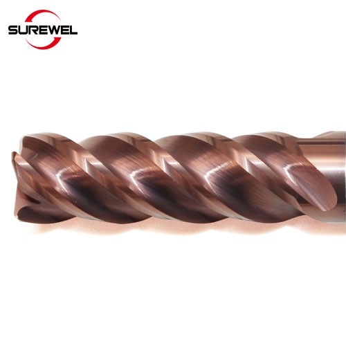 Tool Material:Carbide Coating:AlTiSiN R Angle:R0.2 R0.5 R1.0 R2.0 Applicable Workpiece:Suitable for alloy steel, tool steel, carbon steel, HRC48 or below pre-hardened steel, cast iron, stainless steel, titanium alloy, nickel alloy, high temperature alloy. Product Features: 1.Double helix circular groove end mill, 42°/45° helix angle, unequal division, high rigidity circular groove anti-vibration design, can be widely used in coarse, medium and high efficiency cutting path application mach